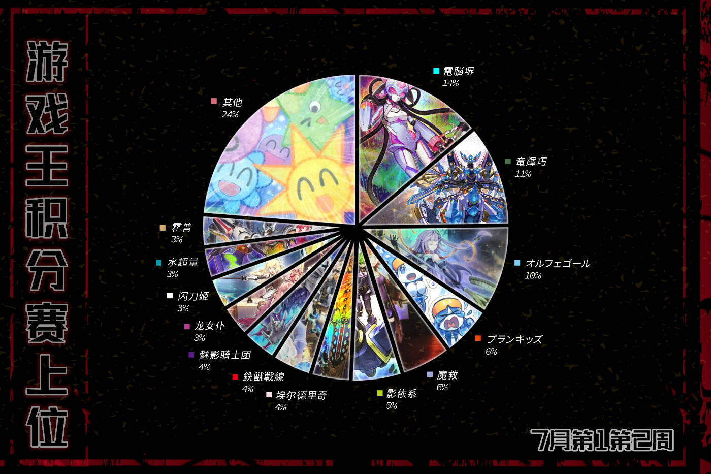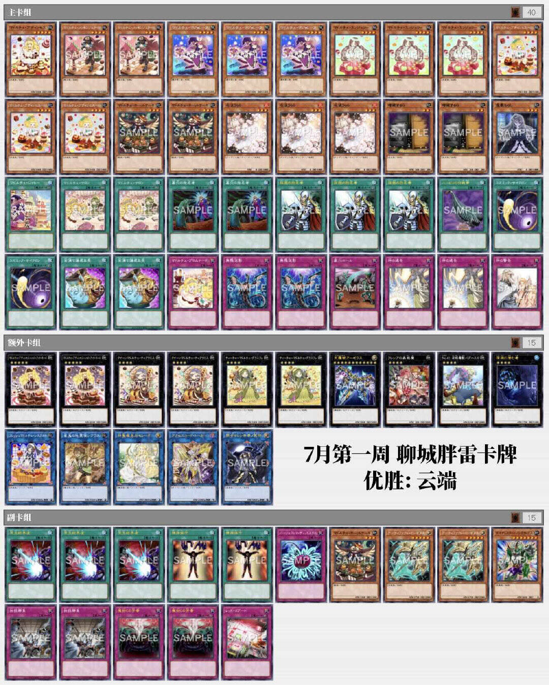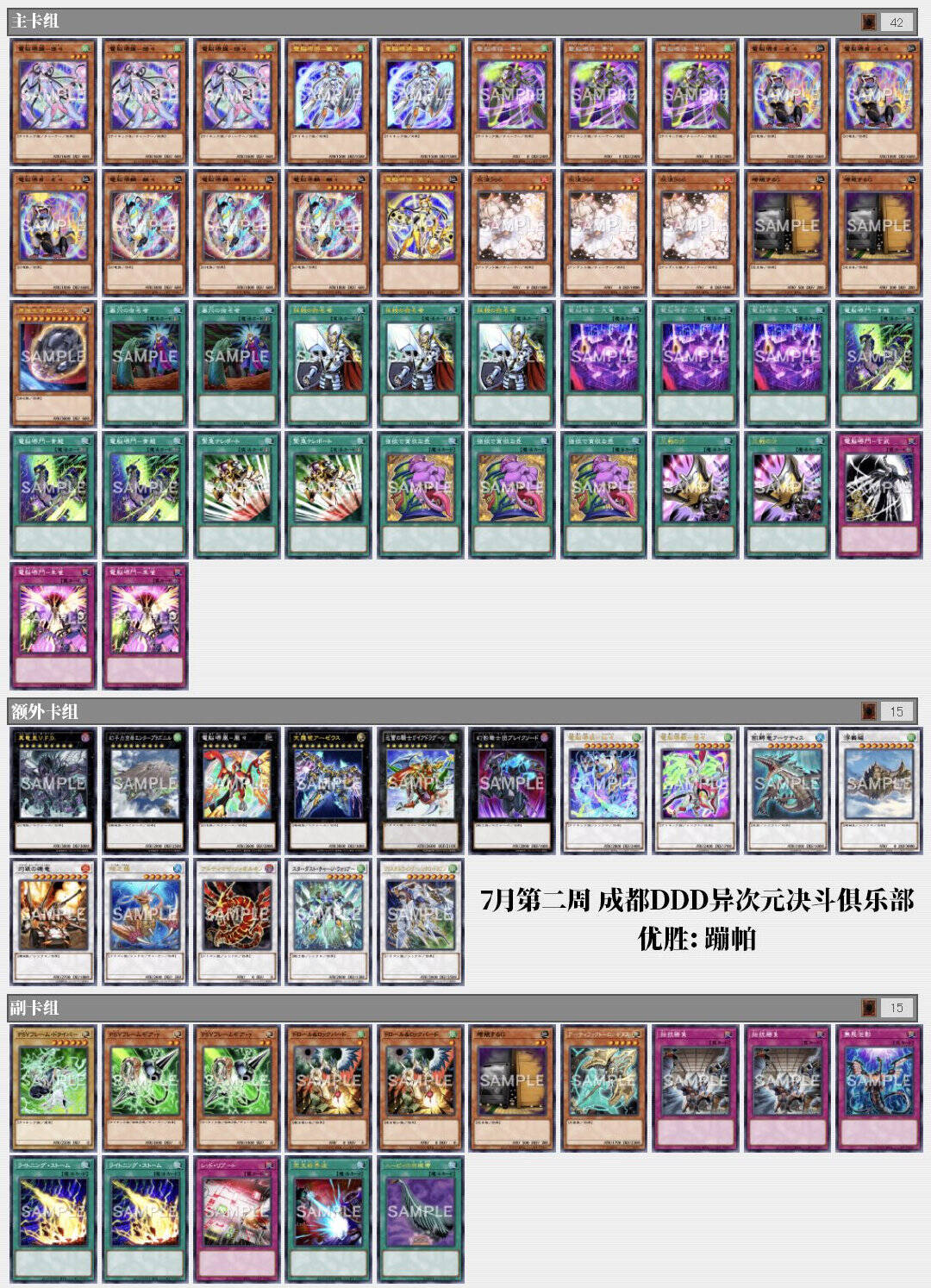 7月第1~2周,可收集到的中国大陆公认店铺合计承办93场OCG积分赛,共有1547人次的玩家参赛,优胜卡组分布如下:
