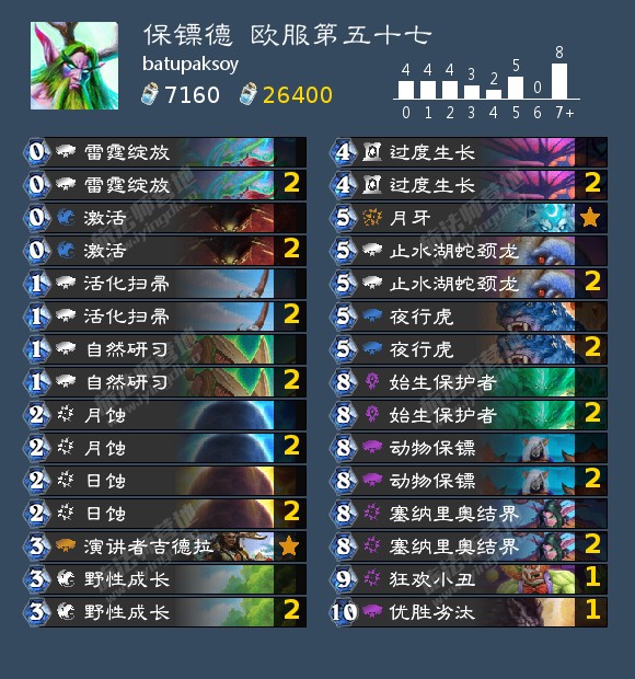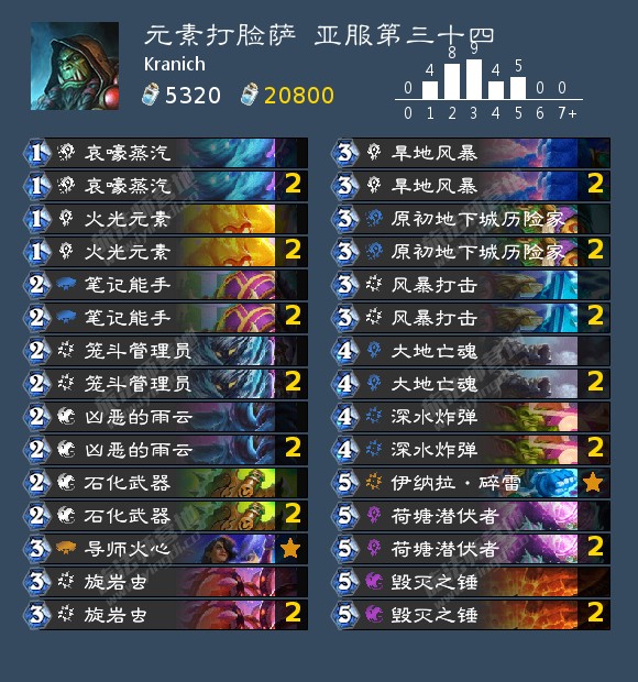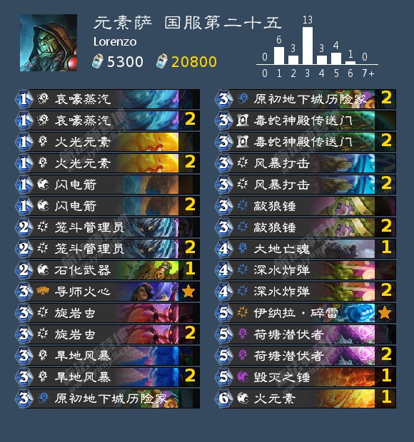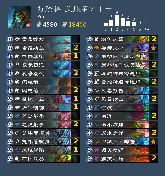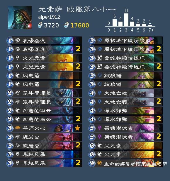 萨满还是以两种主流构筑形态为主,偏中速一点的元素萨和略微激进的打脸萨,不过目前看来上分元素萨可能略好一些,其实两者都较为相似,都得靠武器打脸以及了不起的导师火心。