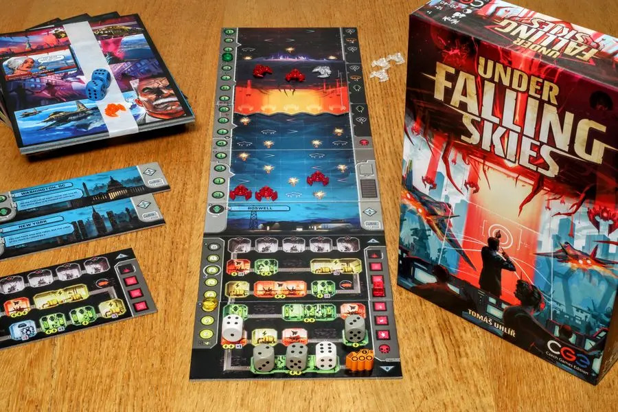 《Under Falling Skies》是一款赢得了2019年九卡桌游设计比赛的PNP游戏,作为优胜者,它得以正式出版。