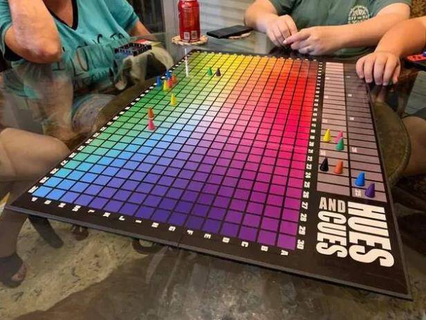 《Hues and Cues》是一个在国内相对冷门,但好评率很高的游戏。游戏的核心玩法实际上还是聚会游戏中常见的“我说你猜”,但是这款游戏的表现形式有些特殊,它的任务是根据词语猜颜色(俗称快乐调色盘)。