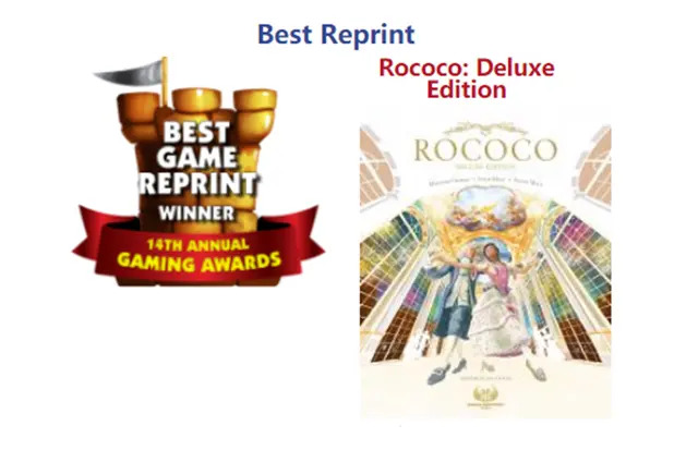 桌游圈中一直流传着“好游戏总会重置”这句话,从另一个角度来说,能重置的游戏意味着它很经典。本次得奖的《洛可可:豪华版》就是这样一款口碑与素质兼得的作品。
