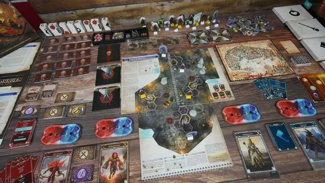 《幽港迷城》的规则很难上手,也算是体量极大的美式游戏的通病。在主轴之外会有大量的细节需要熟悉,更何况它的规则主轴也十分复杂。《幽港迷城:雄狮之颚》则将这些复杂系统的教学贴心地放进了游戏的剧情中,可以一边玩一边学,**降低了门槛,十分适合新人上手。