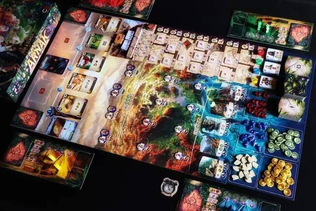 《阿纳克遗迹(Lost Ruins of Arnak)》也是一款十分热门的游戏,在BGG上排名攀升也颇快。玩家在游戏里需要扮演探险家去发现伟大文明的遗迹,寻回失落的文物,面对强大的守护者,最终发现岛上隐藏的秘密。
