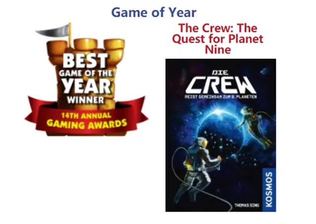 《星际探险队(The Crew)》这款游戏从推出伊始就人气极高,之前也已斩获了不少奖项,这次再度在Dice Tower的舞台上斩获大奖也在意料之中。虽然游戏的体量不大,但游戏素质真的很高。