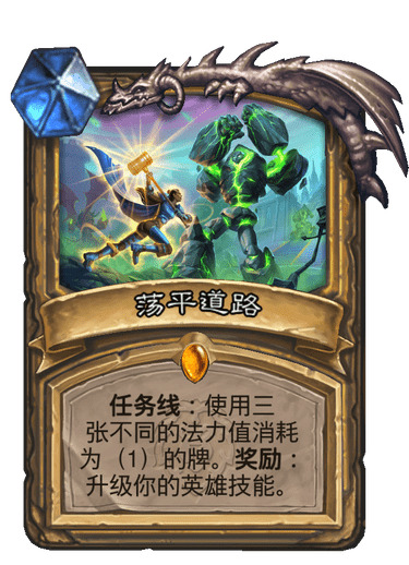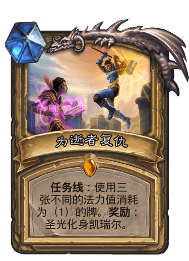 任务线:使用三张不同的法力值消耗为(1)的牌。奖励:装备一把1/4的圣光的正义。
