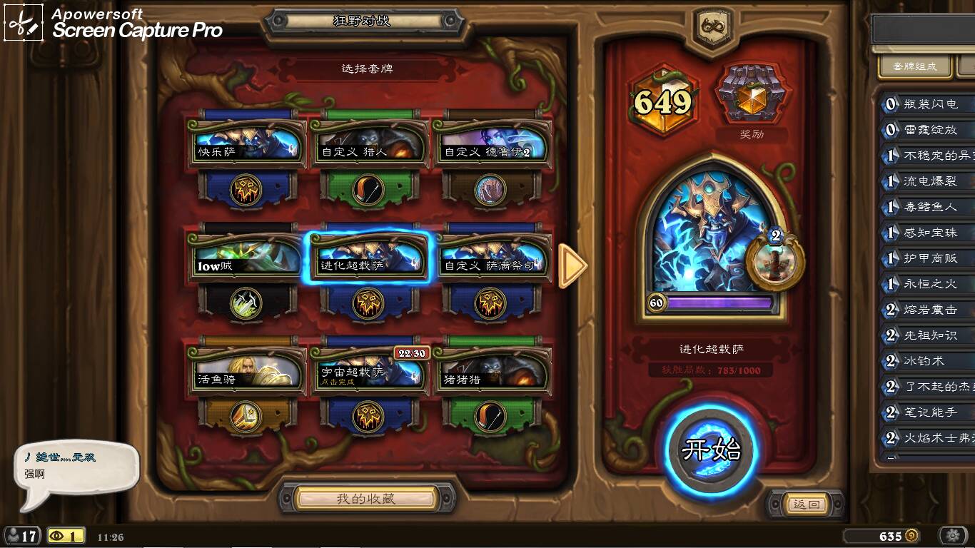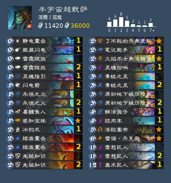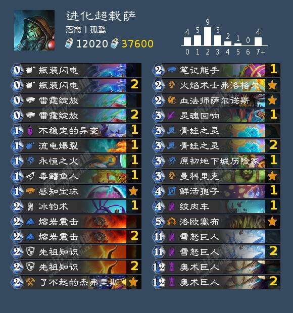 2.这套牌相比于同类型的超载萨,启动成功率和下限远高于其他卡组,同时不过分依赖于雷霆绽放。只需要2张甚至一张不稳定的异变,我们就能完成启动,在站住场面的同时大量过牌。
