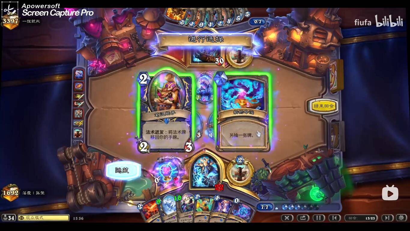 三.无绽放加后手:这里可以做的操作有点多,我们可以选择3个1费加振击解过载的打法,也可以选择5次1费在抽空2费的同时减奥术巨人的费用。评判标准为冰钓术,手牌数量和巨人费用。