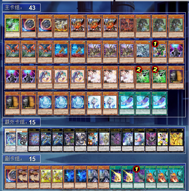 虽然是beat卡组但是由于卡组特性原因无法携带红坑,于是携带了大量手坑和解场物以便于让先,其剩下部分采用了辉夜坏兽系统和大量易于特召的八星怪兽用来出R8进行压制或者斩杀