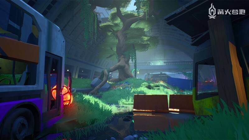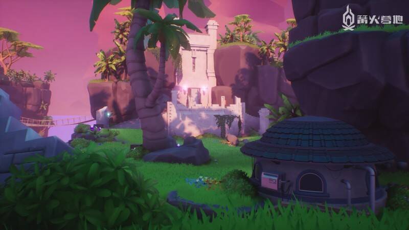 《Arcadegeddon》将在发售时发布三张地图,分别是「Nerve Center」、「Mystic Isles」和「Aftermath」。霓虹灯照耀下的「Nerve Center」是 Gilly 游戏的焦点,也是 Fun Fun 公司的主要攻击目标。「Mystic Isles」是一个寺庙遍布的热带海滩,看起来就像是一张度假圣地的明信片。而「Aftermath」就不一样了,这个被战争蹂躏的城市重新回到了大自然的主导之下,与游戏其他地方的欢快基调形成了鲜明的调性对比。