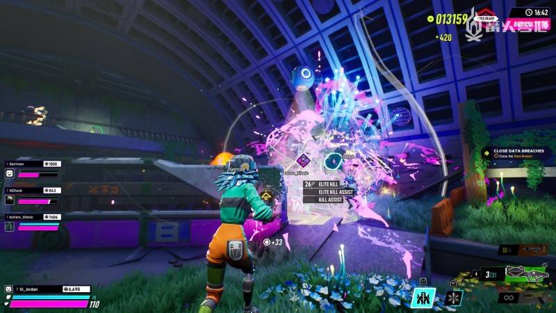 本作中的一个重要竞争因素是回合结束时的得分,每个人的表现都会有不同等级,比如谁复活的盟友最多,谁拿的人头最多。你的排名越高,获得的个人好处就越多,比如可以获得更多用来购买新皮肤以及从 Gilly 那里购买武器皮肤的特殊奖券。我在打多人比赛的时候发现,这种设计带来的好处是可以创造出一种友好的竞争意识,我的小队在为了团队利益而一起战斗的同时,也不会羞于偶尔从队友那里偷一个人头来提高自己的数据。