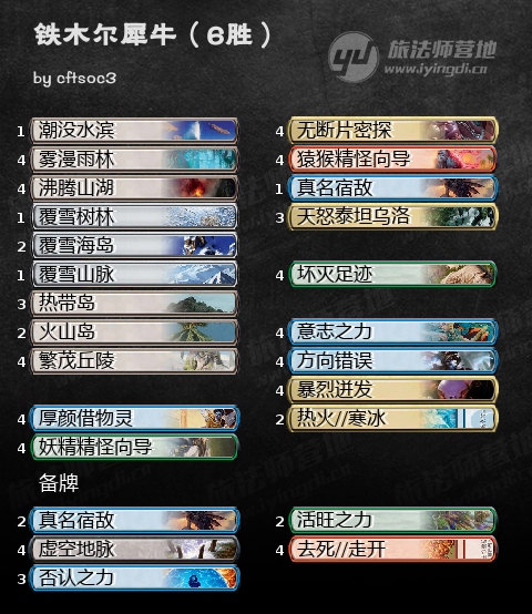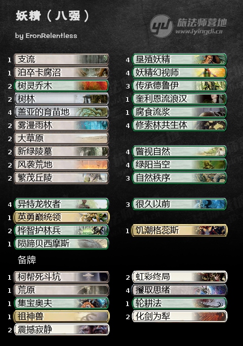 八强我们还看到了一套妖精,备牌同时使用了流放之径和虹彩终局,能应对各种不同的威胁,其中流放之径能很好应对黯潮龙侯