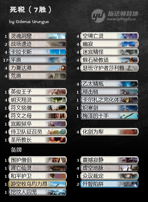 八强之外,一套约力昂死税取得了7-1的好成绩。将约力昂作为行侣,就有理由使用更多东西,其中使用的4张幽寂一定是构组80张套牌的最大原因。卡尔札之完化体也是一张非常强大的牌,已经看到几乎所有死税套牌都在使用