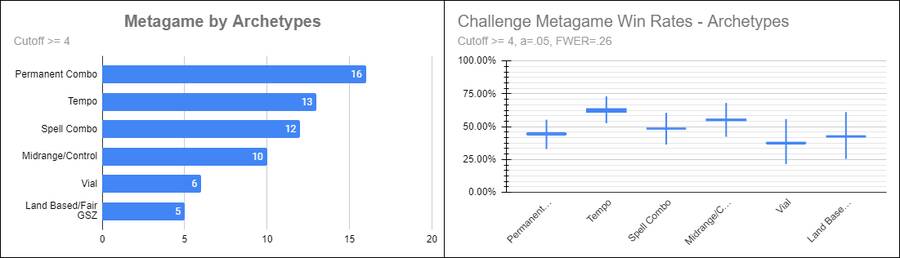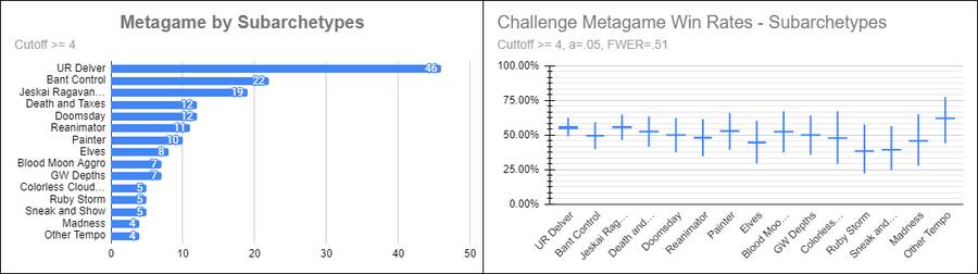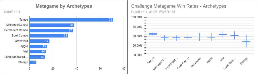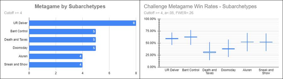 周六的挑战赛有72人参加,下面是这场比赛的套牌分布情况(感谢 Legacy Data Collection Project 对比赛数据的收集和整理)