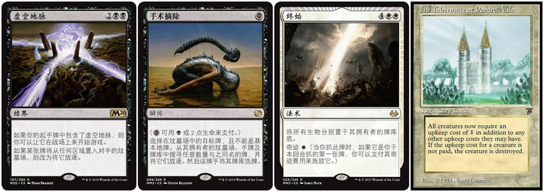 虽然像虚空地脉这样的传统坟场针对还是会克制其他一些牌,但这套牌也能换出复仇藤蔓、阿戈纳司境蛮牛或愤怒,缩小虚空地脉能带来的打击。另外一些一次性的坟场针对也并不会对这套牌造成很大打击,如果复仇藤蔓被手术摘除,这套牌还能用萝特瓦拉和安姬的劫夺客取胜