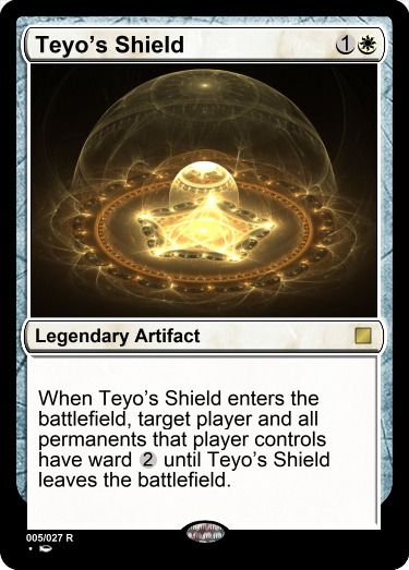 当泰佑的法盾入场时,目标玩家和所有他操纵的永久物拥有守护2直至泰佑的法盾离场。