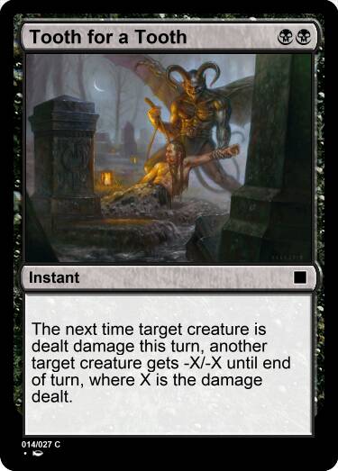 此回合下次目标生物受到伤害后,目标生物-X/-X,X是受到的伤害。