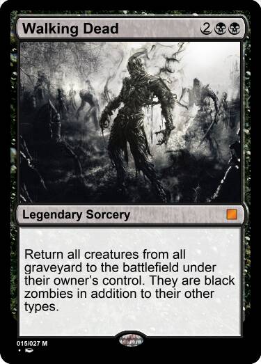 坟场里所有生物返回其所有者的战场,获得僵尸副类别。