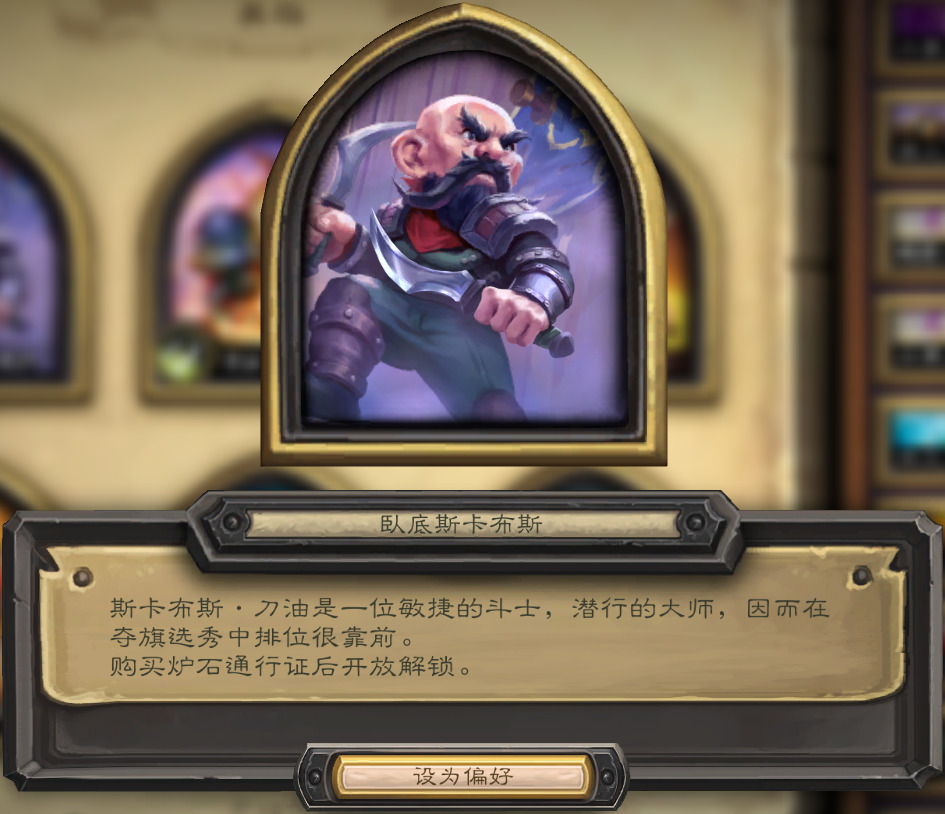 盗贼新皮肤“卧底斯卡布斯”(暴风城通行证路线100级):