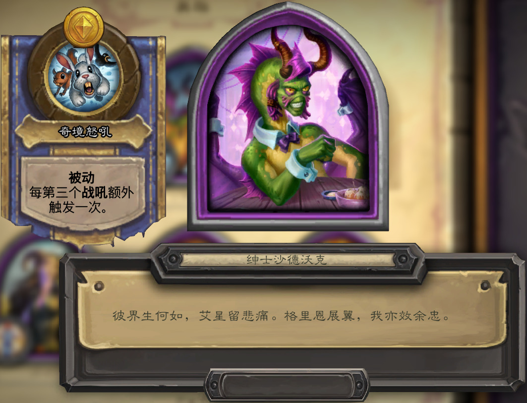 (注意这里他的新技能仍然是“每第三个战吼额外触发一次”)