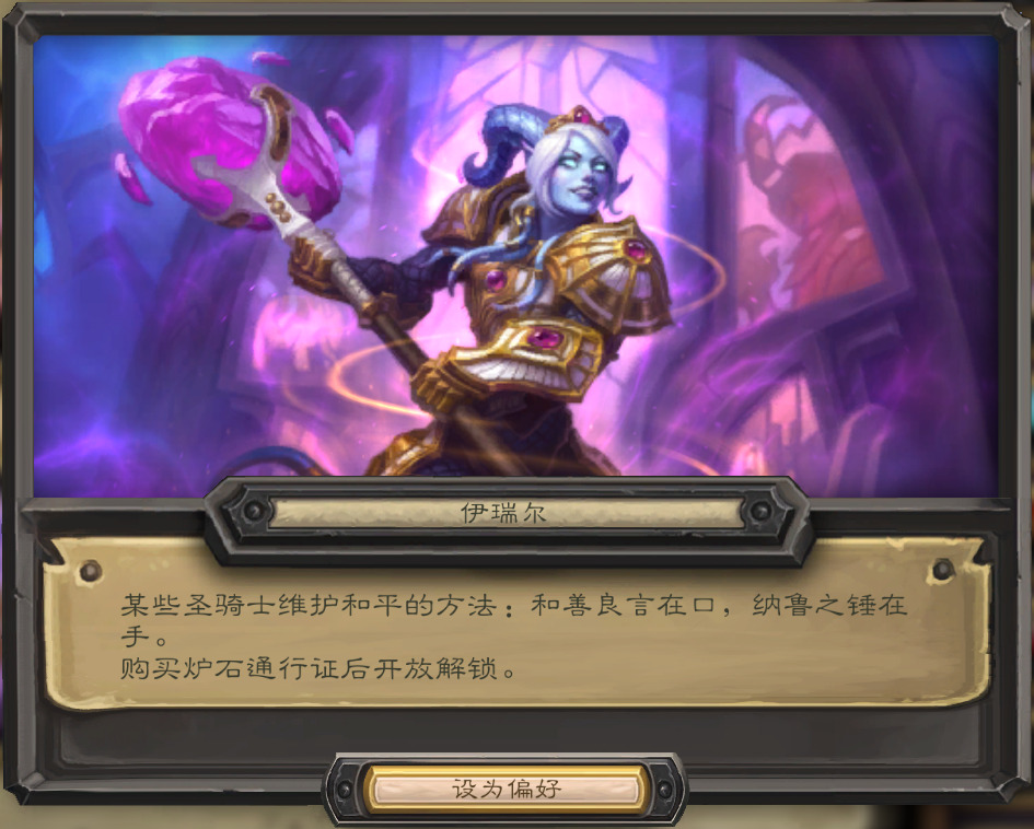 新卡背“伊瑞尔”(暴风城通行证路线30级):