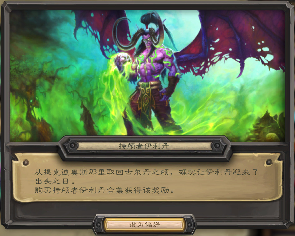 恶魔猎手经典皮肤伊利丹新版本“持颅者伊利丹”(应该是英雄之书配套合集):
