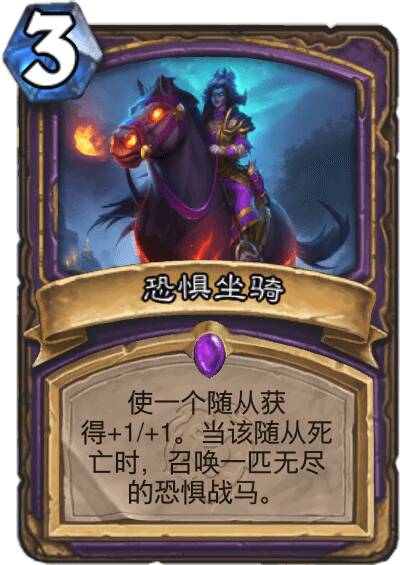 (无尽的恐惧战马是恶魔,亡语是在你的回合结束时召唤本体,跟原来的恐惧战马一样)