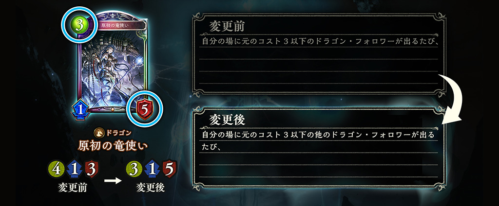 入场曲和进化时能力追加了“将抽取的牌消耗-1”的能力。
