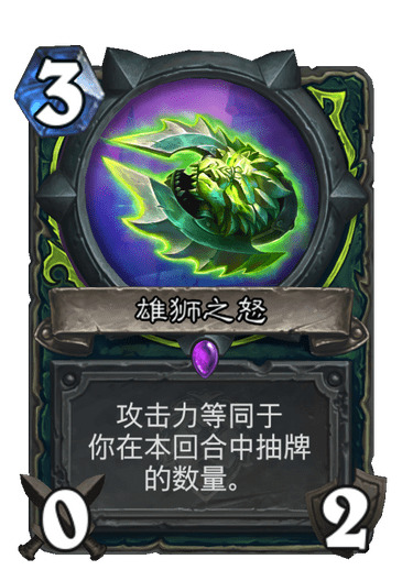 当你牌库不多,且有几张交易牌时(比如牌库剩2张而你有3张交易牌),就可以无限交易抽交易。每花1费交易都能让雄狮之怒+1攻。在此同时,如果交易到了抽牌卡,也可以直接打掉。这样一来,用雄狮之怒一回合打出10几点伤害并不难(配合交易时抽到的0费抽牌)。