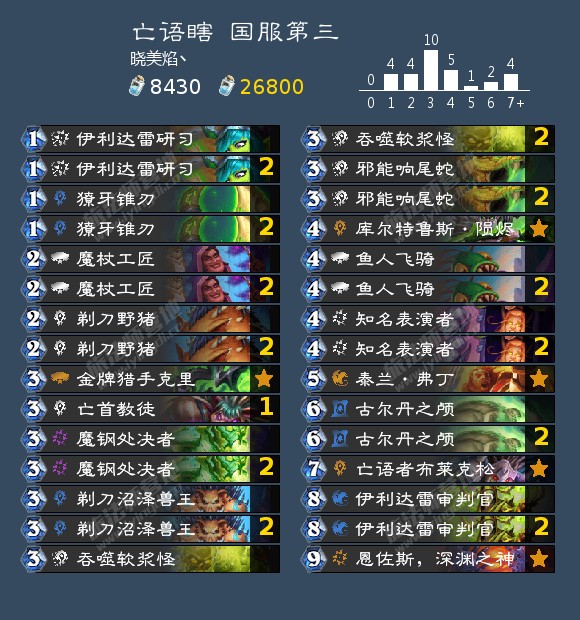 大家好,我是际蒙。不出意外的话,新版本将在8月4日实装,这也意味着本文将会是贫瘠之地/哀嚎洞穴大版本的最后一次标准高分卡组盘点,作为这一栏目的创始人,我谨代表所有作者感谢大家这一个版本以来的支持。接下来,让我们一起看看在牧、德削弱之后,天梯上发生了哪些变化。