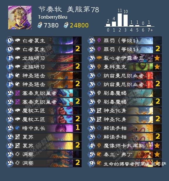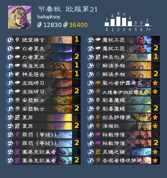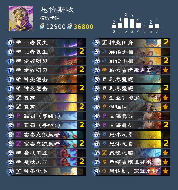 -复苏*2、魔杖工匠*2、罪罚(等级1)、光沐元素;+绝望祷言*2、狂乱、暗言术:毁、黑岩法术抄写员*2、吞噬者穆坦努斯