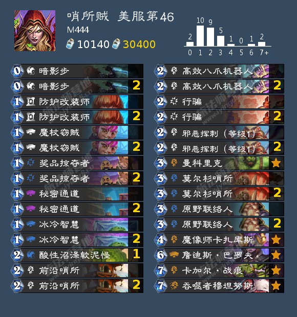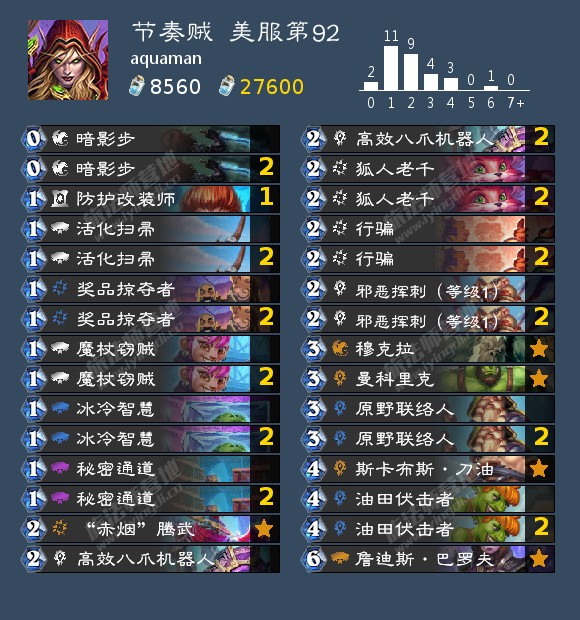 除此之外,在高分段还隐藏着一种拼上限的潜行者——刀贼。刀贼的劣势对局极多,也有着极度看牌序这一缺点,但只要你有信心把把准时来刀来毒来斗篷来过牌,劣势对局什么的其实基本也不存在……