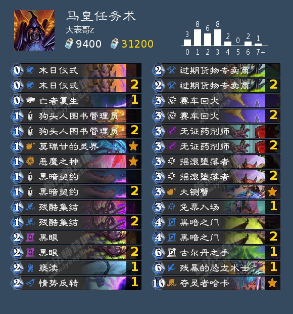 原理也很简单,黑暗之门抽哈卡或者哈卡在手牌就过期货物专卖商弃掉哈卡下恐龙术士召唤哈卡!触发哈卡亡语最后情势反转斩杀!抽到死为止!恐怖如斯。。。(这里直接下哈卡费应该也是够的毕竟新卡没出还得实操才知道)key牌最多三张最少只需要一张!