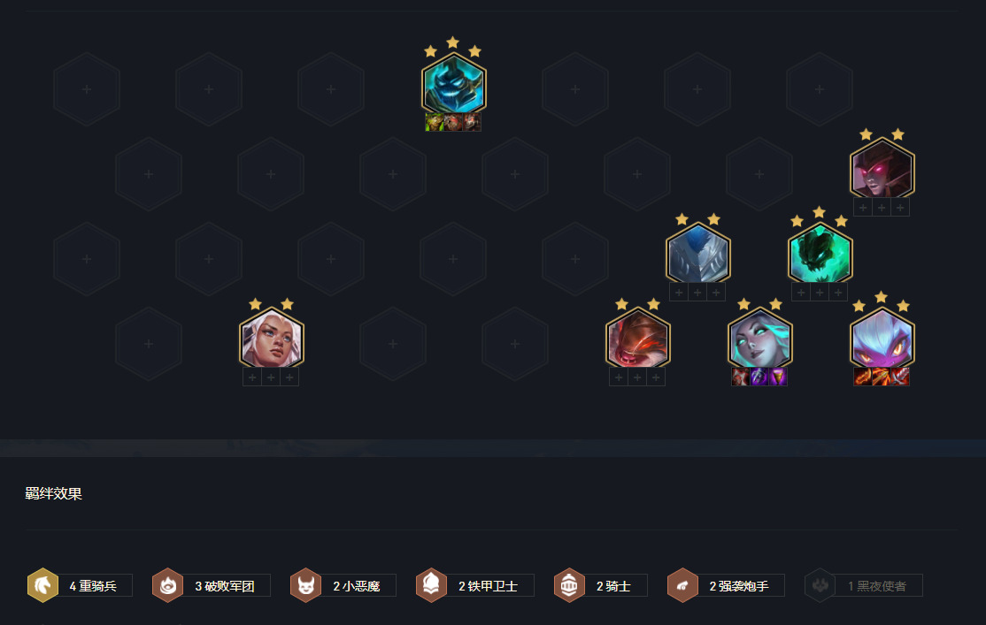 关键羁绊:3/4重骑+2炮手。阵容主C小炮、主坦人马、副C女枪。