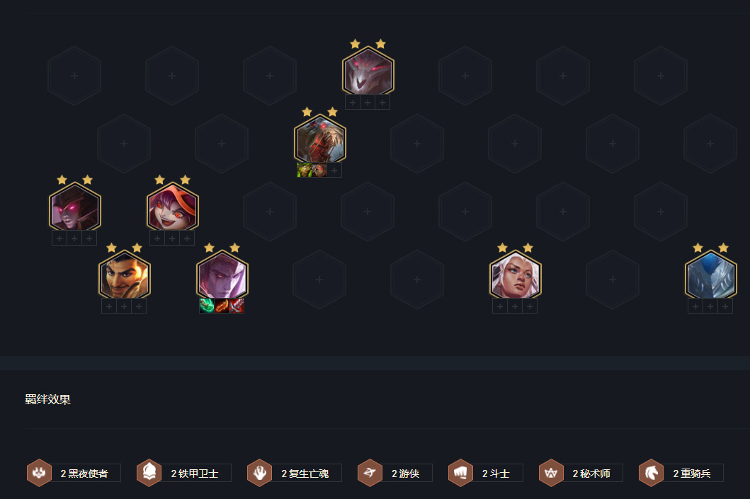 关键羁绊:3复生+2游侠。阵容主C月男,副C阿克尚,主坦:稻草人。