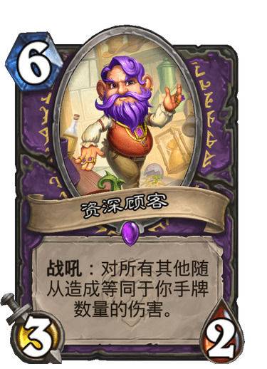 劳累的驴鸽? 这张劳累的驮骡是中立里非常优秀的单卡,我觉得应该会进不少卡组的构筑。对于手牌术来说,他可以很大程度弥补先手少一张牌的尴尬,抽到就能复制既可以增加手牌数量帮助你以更低费用打出闪金镇豺狼人和安纳塞隆,本身还是两个嘲讽评率,和手牌术防守的属性很是契合。这部分正好说说这张卡其他的价值,目前我新卡看到的一些配合有和骑士的污手党体系的buff配合,但考虑到中立有一张伦萨克大王,那些想玩手牌buff的职业应该都可以带这张。其次是他的野兽属性和嘲讽属性说不定和未来的嘲讽体系德鲁伊会有配合,总之是一张很有构筑空间的优秀辅助卡。