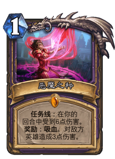 这套牌的思路就是利用黑眼的特效打出电表特效的效果,配合赛车回火,古尔丹之手这样的牌过牌(免票入场是定向检索)卡组里有烈焰小鬼,血缚小鬼这些前期上场身材很棒还能做任务的优质生物,顺利的话这套牌能在5-7费左右做完任务(就算做不完任务当动物园玩也能铺一大波了),完成后可以用灵魂窃贼的特效和一些自残牌击杀对手。任务做的快的卡组还有一个好处,你越早做完,那个7-7身材的奖励给对手的压力就越大。