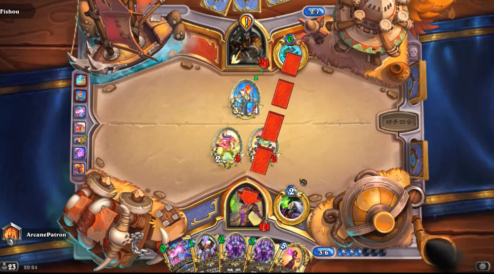 - 海盗战最强的时候讲究是前期优质生物加小斧子的辅助控场+奥金斧的输出,那个时候海盗战前期的节奏一费出飞吧玻璃拉个帕奇斯,二费挂刀,三费出一个334给武器+1+1,这是非常强且让对手窒息的节奏。如果你玩的是任务卡组,我觉得就单单你一费一定挂任务且起手一定少一张牌,我觉得对你一个中速节奏流的战士就不能接受,我宁愿一费挂一把砥石战斧