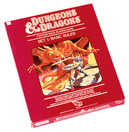 我在1980时满十三岁并且参与了犹太教的成人礼。我邀请很多人来观礼,而我邀请的邻居之一刚好就是我的一年级导师。她送给我的礼物就是龙与地下城。我记得它有一个色彩缤纷的盒子,上面还有一只龙,而说明书则是同一个插画的全蓝色版本。