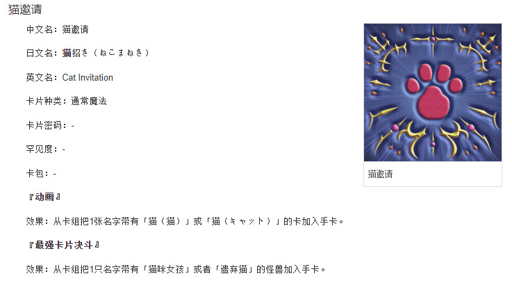 从卡组把1张名字带有「猫(猫)」或「猫(キャット)」的卡加入手卡。