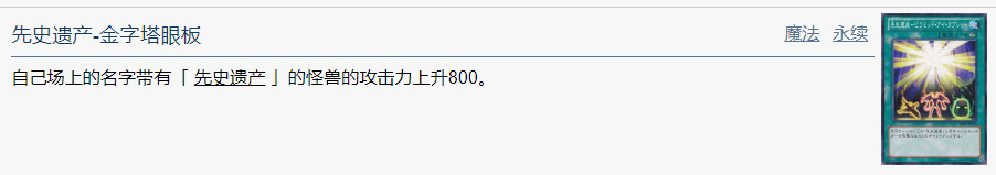 自己场上的名字带有「 先史遗产 」的怪兽的攻击力上升800。