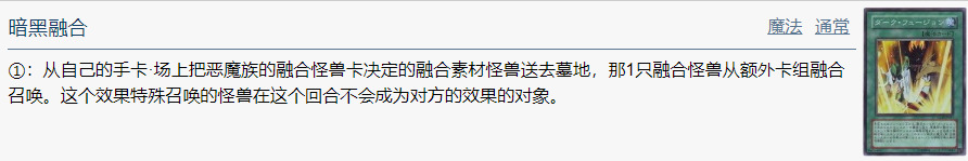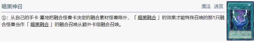 ①:从自己的手卡·墓地把融合怪兽卡决定的融合素材怪兽除外,「 暗黑融合 」的效果才能特殊召唤的那1只融合怪兽当作「 暗黑融合 」的融合召唤从额外卡组融合召唤。