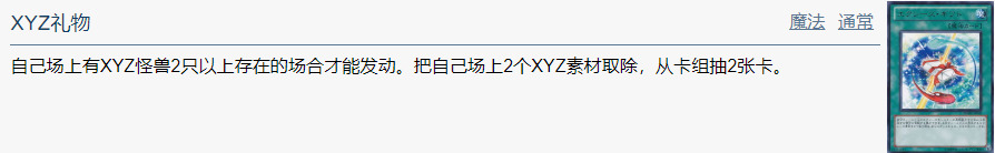 自己场上有XYZ怪兽2只以上存在的场合才能发动。把自己场上2个XYZ素材取除,从卡组抽2张卡。