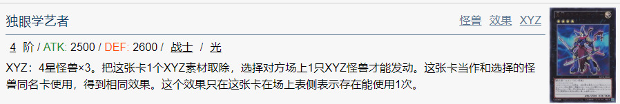 XYZ:4星怪兽×3。把这张卡1个XYZ素材取除,选择对方场上1只XYZ怪兽才能发动。这张卡当作和选择的怪兽同名卡使用,得到相同效果。这个效果只在这张卡在场上表侧表示存在能使用1次。