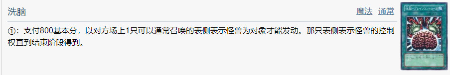 ①:支付800基本分,以对方场上1只可以通常召唤的表侧表示怪兽为对象才能发动。那只表侧表示怪兽的控制权直到结束阶段得到。