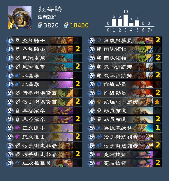 攻略就是起手留旱谷狱卒和水晶学。然后用污手党buff手里的报告兵。战场的狂欢报幕员,战马指挥官,团队领袖的加攻都是有效的,因此这个成就可以说是白给型的。