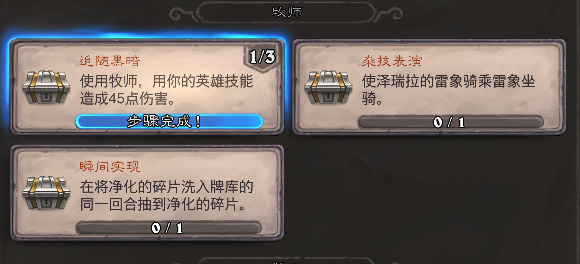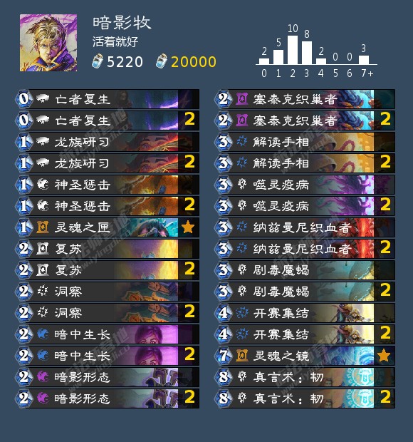 卡组是集结牧的改版,因此生成额外法术的能力很强,多来点暗影形态可以加速成就的完成。