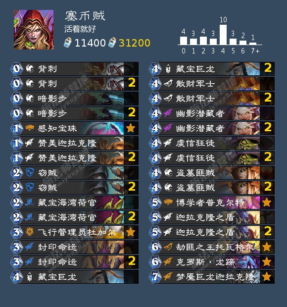 窃贼散财军士可以持续制造幸运币,所以尽可能让他们战场。幽影潜藏者一次3枚币,所以暗影步留给她。不知道周卓刷幸运币是否有效,所以需要大家帮忙做测试了。