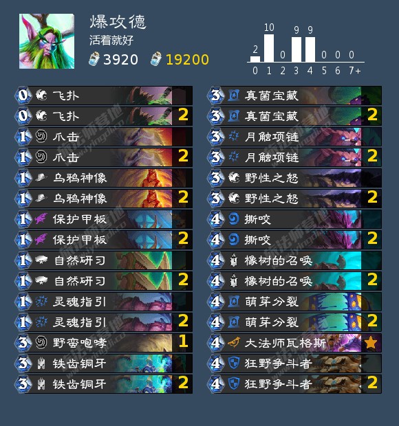 攻略就是起手找橡树的召唤还有保护甲板,之后就是不停变脸和使用加攻击的牌。发现类的法术就找加攻击的。萌芽分裂复制大法师瓦格斯或者狂野争夺者都没事。