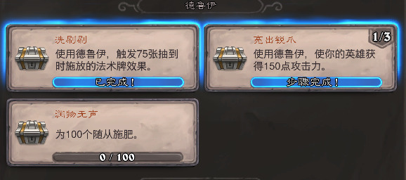 亮出锐爪,使你的德鲁伊获得600点攻击。累积型成就,满编各种加攻卡就完事了。法术德加橡树体系很快的。