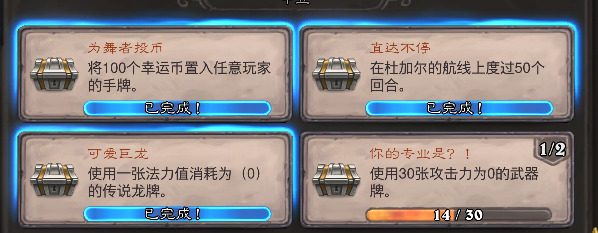 1成就的奖励就是蚊子腿,最高的500经验换算成后面1500经验50金,也就17金。所以为了这点钱不要太纠结,心情好就刷会,心情不好了就果断放弃。毕竟炉石可是专治低血压的神药,大家还是身体要紧。比如这次我的标题快人一步,但即使你们像作者我一样完成了如此多新版本成就,加起来的奖励经验还不如每个星期的每周任务的经验呢。